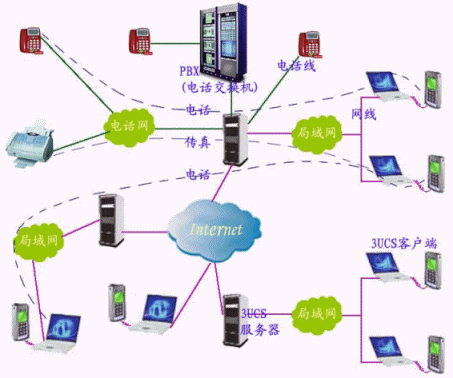 3UCS秉承便捷溝通、高效辦公之理念,將企業(yè)語音通訊、數字通訊整合在同一通訊線上,將電話交換機功能延伸至IP網絡,電話與傳真線路共享,有效利用線路資源,無縫連接三個網絡(電話網、局域網、因特網),將電話交換機、傳真服務、消息等功能集于一身, 利用現有的局域網、因特網接打電話,收發(fā)傳真。
