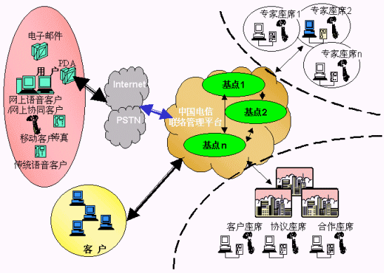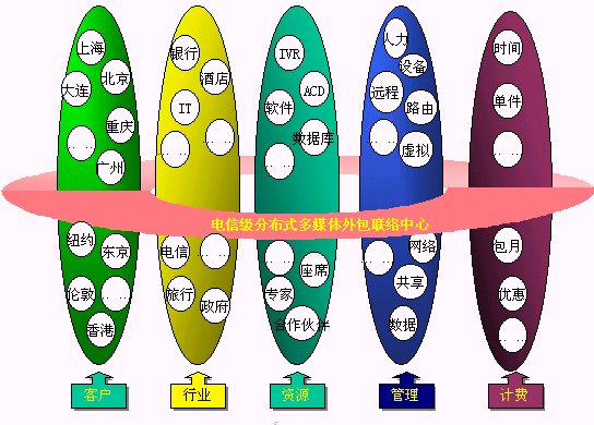 電信運(yùn)營商提供的用戶、客戶、電信公司的統(tǒng)一的聯(lián)系平臺,各類客戶通過使用聯(lián)系平臺,向其用戶提供方便的、不受時(shí)間、地域和媒體的限制的"3A"級聯(lián)絡(luò)服務(wù),用戶、客戶、電信平臺間的聯(lián)絡(luò)能得到有效路由、管理、品質(zhì)保障;聯(lián)絡(luò)中心通過將分布在各地、各種媒體、各種形式的資源整合在一起實(shí)現(xiàn)客戶服務(wù)增值,創(chuàng)造無限商機(jī),有效提升客戶聯(lián)絡(luò)中心的價(jià)值,使用戶得到最貼身的、個(gè)性化的、專業(yè)的服務(wù),為客戶提供成本更低、資源更豐富、服務(wù)更專業(yè)、具備強(qiáng)大商業(yè)智能的產(chǎn)品營銷及服務(wù)、電信運(yùn)營商則開發(fā)大量的增值服務(wù)、產(chǎn)生更多的利潤增長空間、更多忠實(shí)的客戶,實(shí)現(xiàn)三方面共同成功。