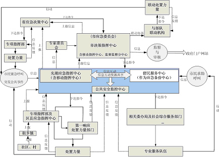 “3”指市決策指揮中心、各區(qū)縣指揮中心、專項指揮部及相關(guān)委辦局與社會綜合服務(wù)部門: