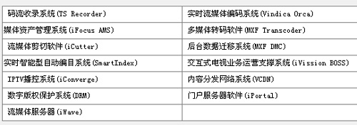 提供重慶網(wǎng)通IPTV系統(tǒng),其中包括所有數(shù)字節(jié)目?jī)?nèi)容的制作、管理、發(fā)布平臺(tái),用戶通過IPSTB實(shí)現(xiàn)在TV上的點(diǎn)播、直播等業(yè)務(wù)。