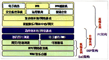 當(dāng)前國(guó)內(nèi)IPTV業(yè)務(wù)試點(diǎn)中采用的機(jī)頂盒,包括華為、中興、UT等主流廠商都主要采用了基于DSP架構(gòu)的技術(shù)解決方案,除能滿(mǎn)足點(diǎn)播、直播等標(biāo)清業(yè)務(wù)需求外,還可通過(guò)軟件升級(jí),以支持信息瀏覽、簡(jiǎn)單的本地/網(wǎng)絡(luò)游戲等增值業(yè)務(wù),基本上可滿(mǎn)足上述業(yè)務(wù)一定規(guī)模用戶(hù)商用要求。