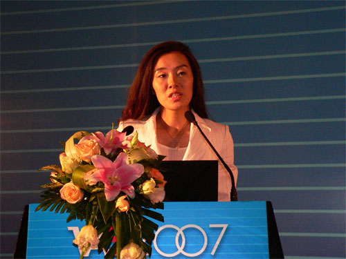 圖為NTTDoComo北京事務(wù)所對外業(yè)務(wù)高級經(jīng)理陳文雅作題為“日本3G應(yīng)用、運營與挑戰(zhàn)”的演講。