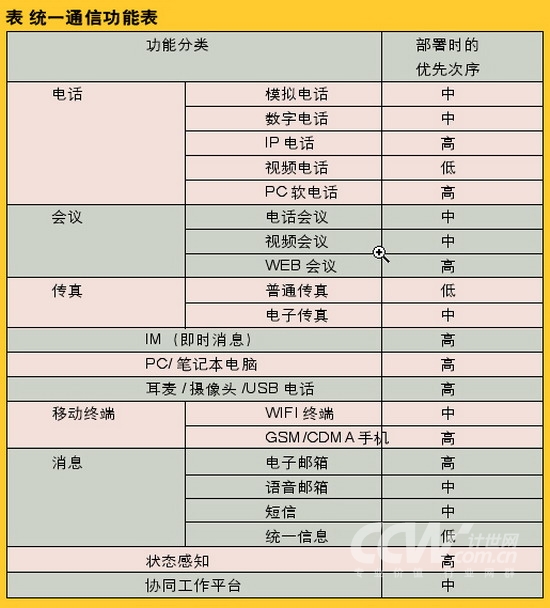 ”、“智能通信”和“統(tǒng)一溝通”等,盡管每個(gè)廠商所給出的定義均有些細(xì)微的差別,但總體來看,其核心內(nèi)容就是指將現(xiàn)在各種溝通方式進(jìn)行融合,目的是讓人們無論是在任何時(shí)間、任何地點(diǎn),都可以通過任何設(shè)備、任何網(wǎng)絡(luò)實(shí)現(xiàn)自由的溝通。目前常用的溝通方式有電話、傳真、短信、email、Web會(huì)議、視頻會(huì)議、語音信箱、IM軟件、協(xié)同工作平臺等等,這些溝通方式覆蓋了電信、IT和互聯(lián)網(wǎng)三大領(lǐng)域,因此統(tǒng)一通信是這三大領(lǐng)域逐步發(fā)展、自然融合的結(jié)果。