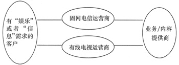 如圖1所示,雖然兩者使用的技術(shù)不同,但它們有一個(gè)相同的運(yùn)營組織結(jié)構(gòu),也就是說,客戶、運(yùn)營系統(tǒng)和業(yè)務(wù)/內(nèi)容提供商是它們競(jìng)爭(zhēng)的3要素,下面將從這幾個(gè)方面對(duì)IPTV與“數(shù)字電視”的競(jìng)爭(zhēng)做簡(jiǎn)要的分析。