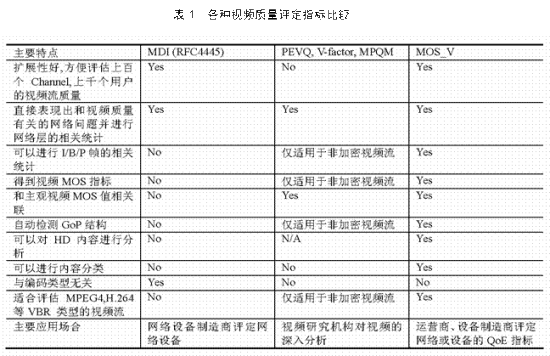 MOS_V,另一種是視頻的全參考(Full Reference)質(zhì)量評(píng)定。幾種評(píng)定方面的簡單比較如表1所示,相應(yīng)指標(biāo)的介紹可以參考《電信網(wǎng)技術(shù)》2007年第12期的《IPTV