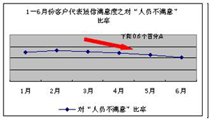 短信滿意度作為實(shí)時的客戶服務(wù)評價手段,“非常滿意”指標(biāo)體現(xiàn)出在服務(wù)過程中一線客戶代表與客戶溝通的愉悅度、忠誠度。隨著“非常滿意”及“對人員不滿意”滿意度指標(biāo)的改善,一定程度上說明一線客戶代表的服務(wù)狀態(tài)得到了有效的改善。