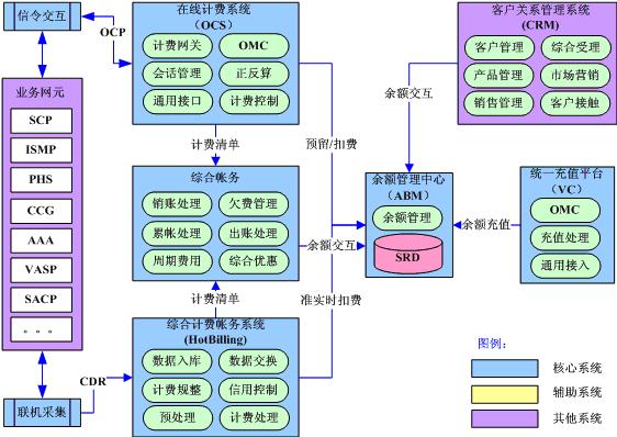 在線計費系統(tǒng)通過實時信令交互實現(xiàn)對高風(fēng)險和高價值業(yè)務(wù)的實時計費;綜合計費帳務(wù)系統(tǒng)通過準(zhǔn)實時話單采集實現(xiàn)對后付費用戶的準(zhǔn)實時計費;綜合帳務(wù)系統(tǒng)實現(xiàn)全業(yè)務(wù)的綜合優(yōu)惠和帳務(wù)處理;獨立的余額管理中心實現(xiàn)對電信余額的統(tǒng)一管理,未來將成為電信的“內(nèi)部銀行”;統(tǒng)一充值平臺實現(xiàn)全網(wǎng)全業(yè)務(wù)的統(tǒng)一充值支付。