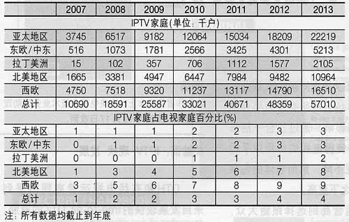 在全球,已經(jīng)有越來越多的國家和地區(qū)投身IPTV。IPTV以其獨一無二的特性和服務方式展現(xiàn)在全球市場上如今IPTV在全球的發(fā)展可以用“日新月異”來形容。