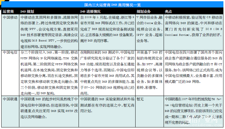 國內(nèi)三大運(yùn)營商已經(jīng)開始積極試點(diǎn)和部署IMS商用網(wǎng)絡(luò),樹立全業(yè)務(wù)競爭市場(chǎng)的優(yōu)勢(shì)。