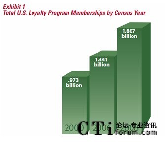 據(jù)權(quán)威的客戶忠誠度研究機(jī)構(gòu)COLLOQUY在2009出版的一份報(bào)告,2008年底,全美客戶忠誠度計(jì)劃的參與人次達(dá)到18.07億,平均每個美國家庭參與了14.1個忠誠度計(jì)劃,相較2006年底的13.41億參與人次,共增了了24.73%(連續(xù)兩年環(huán)比增長12%/年),而同期美國的GDP增長僅為2.2%。從這一點(diǎn)上看,美國企業(yè)對忠誠度營銷的熱情不減,盡管忠誠度營銷在美國已相當(dāng)成熟,但美國企業(yè)仍然把它當(dāng)作是營銷的重要工具。