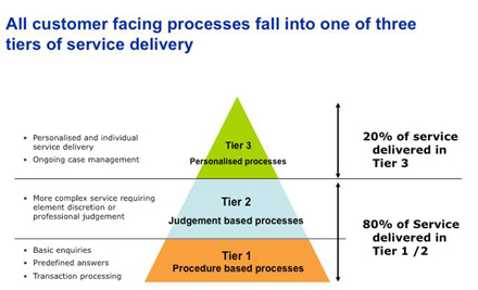 地方政府意識到,正如我之前的文章中所描述的,對整體客戶體驗(yàn)至關(guān)重要的有三個層次的服務(wù)交付流程: