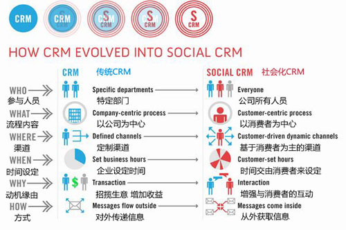 社會化CRM區(qū)別于傳統(tǒng)CRM的不同之處: