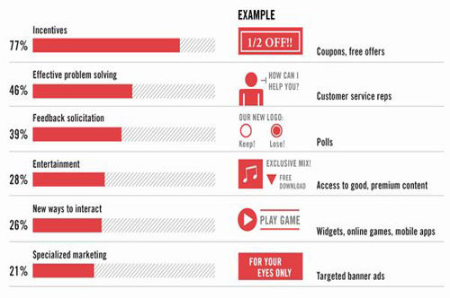 1.獎勵回報,如優(yōu)惠券或免費禮品(77%)