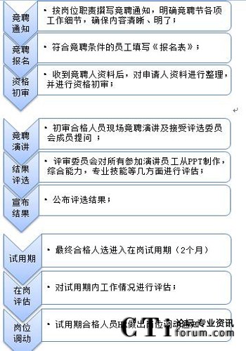 如何進(jìn)行內(nèi)部選拔 為營(yíng)造公開、公平、公正的內(nèi)部人才選拔環(huán)境,使符合條件的員工均有參與的機(jī)會(huì)和權(quán)利,內(nèi)部選拔人才一般采用競(jìng)聘模式。下圖為參考流程:
