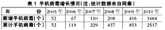 移動(dòng)智能終端與移動(dòng)應(yīng)用商店在向用戶提供豐富多彩的應(yīng)用軟件和數(shù)字內(nèi)容的同時(shí),智能終端病毒、應(yīng)用軟件吸費(fèi)、非法信息傳播等安全問題不斷暴露。移動(dòng)智能終端已經(jīng)成了病毒發(fā)威的新戰(zhàn)場(chǎng),手機(jī)僵尸、給你米等手機(jī)病毒破壞終端功能,惡意吸取資費(fèi),竊取用戶隱私,極大地?fù)p害了用戶利益。據(jù)網(wǎng)秦統(tǒng)計(jì),2010年新增的手機(jī)病毒數(shù)是2004~2009年手機(jī)病毒總數(shù)的近兩倍(見表1),預(yù)計(jì)共感染手機(jī)800萬部以上。據(jù)報(bào)道,我國(guó)至少有10家Android平臺(tái)的吸費(fèi)SP或渠道公司,抽樣顯示近40%的Android常見應(yīng)用程序被植入惡意吸費(fèi)代碼。在信息內(nèi)容安全方面,包含色情暴力、反動(dòng)言論等信息的應(yīng)用軟件曾出現(xiàn)在App Store中,危害青少年健康成長(zhǎng),影響社會(huì)穩(wěn)定團(tuán)結(jié)。2010年10月,美國(guó)杜克大學(xué)等對(duì)30款A(yù)ndroid應(yīng)用進(jìn)行分析,發(fā)現(xiàn)其中有三分之二的應(yīng)用通過分享用戶地理定位數(shù)據(jù)或信息的方式侵犯用戶隱私,半數(shù)應(yīng)用未經(jīng)用戶允許將用戶地理定位信息發(fā)送給廣告網(wǎng)絡(luò)或數(shù)據(jù)分析公司。我國(guó)還存在智能手機(jī)終端內(nèi)置應(yīng)用軟件和第三方應(yīng)用軟件涉黃或吸費(fèi)、手機(jī)WAP網(wǎng)站涉黃等問題。另外,黑莓獨(dú)特的加密技術(shù)引發(fā)擔(dān)憂,德國(guó)等紛紛要求監(jiān)控黑莓通信服務(wù)。
