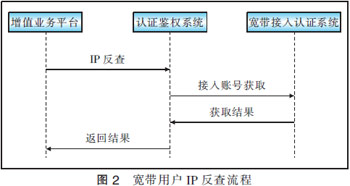 對于寬帶用戶來說,認證鑒權(quán)系統(tǒng)需要根據(jù)用戶訪問的IP地址對用戶身份進行反查;或?qū)τ脩粼L問業(yè)務(wù)時輸入的用戶賬號信息進行驗證。其中反查與驗證工作均需借助于寬帶接入認證系統(tǒng)(AAA)實現(xiàn)。