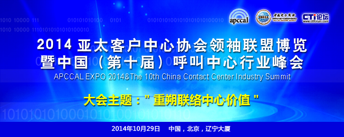 業(yè)界矚目的2014(第七屆)亞太客戶中心協(xié)會(huì)領(lǐng)袖聯(lián)盟博覽APCCAL EXPO暨中國(guó)(第十屆)呼叫中心行業(yè)峰會(huì)將于10月29日在中國(guó)北京舉行,其中29日為大會(huì)和展覽日,向所有關(guān)注行業(yè)發(fā)展的人士免費(fèi)開(kāi)放。本次活動(dòng)預(yù)計(jì)有超過(guò)八百名中國(guó)行業(yè)人士和二百名來(lái)自亞太地區(qū)的行業(yè)精英相聚一起,分享交流。本次活動(dòng)的內(nèi)容包括關(guān)于呼叫中心運(yùn)營(yíng)管理與技術(shù)的研討會(huì),技術(shù)展覽,聯(lián)誼晚宴,呼叫中心實(shí)地參觀等。