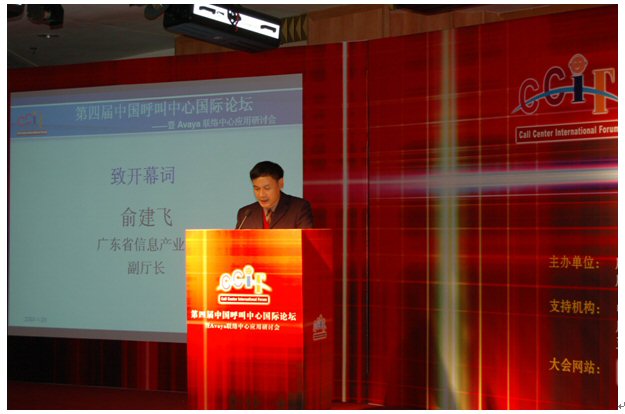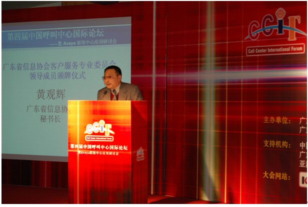 由廣東省信息協(xié)會(huì)、廣東省電子商務(wù)協(xié)會(huì)聯(lián)合主辦,廣東省信息協(xié)會(huì)客戶服務(wù)專業(yè)委員會(huì)、廣州市品派文化傳播有限公司策劃承辦,AVAYA公司總協(xié)辦的第四屆中國呼叫中心國際論壇于2007年1月23日在廣州亞洲國際大酒店隆重舉行,廣東省信息產(chǎn)業(yè)廳副廳長俞建飛出席會(huì)議并致開幕詞。會(huì)上,廣東省信息協(xié)會(huì)秘書長黃觀輝、AVAYA公司銷售總經(jīng)理?xiàng)畛俊⒚裆y行電子銀行部華南運(yùn)營中心總經(jīng)理李濤、網(wǎng)易客戶服務(wù)部總監(jiān)張?jiān)频确謩e做了主題發(fā)言。來自全國各地300多位企業(yè)管理人員參加了本次論壇。
