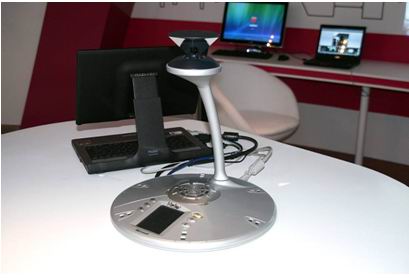 在耐心聽完介紹后,禁不住誘惑,我便親自做了現(xiàn)場體驗(yàn),原來這套系統(tǒng)所使用的360o攝像頭不同于一般的攝像頭,它集4個(gè)攝像頭以及USB設(shè)備為一體,不改變位置就能輕松實(shí)現(xiàn)360度全景覆蓋,讓所有人真正面對面交流。而投影儀的界面設(shè)定更是人性化,界面分上下兩部份,上半部分顯示的是PPT內(nèi)容和發(fā)言者,下半部分顯示的是與會人員。而它的智能語音識別系統(tǒng)更是讓人叫絕,投影儀上的發(fā)言區(qū)頭像根據(jù)發(fā)言者的聲音自動更換,而不受人聲以外的任何聲音的干擾。系統(tǒng)并附帶情景解說詞,系統(tǒng)會自動介紹與會人員所在地。在投放PPT界面旁邊有個(gè)信息欄,在上面能夠看到負(fù)責(zé)人的在線信息,并且可以選擇最合適的方式進(jìn)行溝通,不但可以發(fā)即時(shí)消息和傳輸文件,還可以進(jìn)行語音通話,甚至可以直接用語音連接辦公室電話,只要有網(wǎng)絡(luò),隨便哪里都可以接得到辦公室電話。