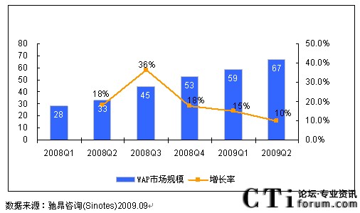 2009年第二季度中國WAP市場規(guī)模達(dá)67億元