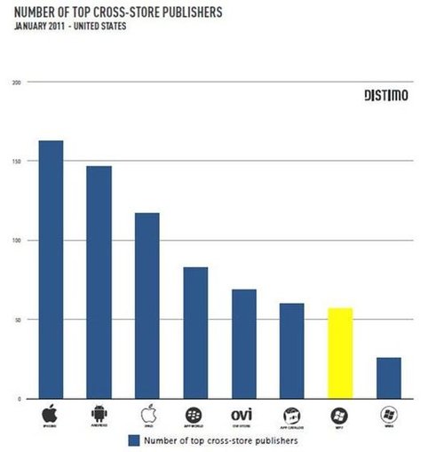 專(zhuān)注于App Store發(fā)展得研究者Distimo昨天公布了一份有關(guān)手機(jī)應(yīng)用程序商店的市場(chǎng)報(bào)告,報(bào)告顯示W(wǎng)indows Phone 7的增長(zhǎng)速度高達(dá)30%。