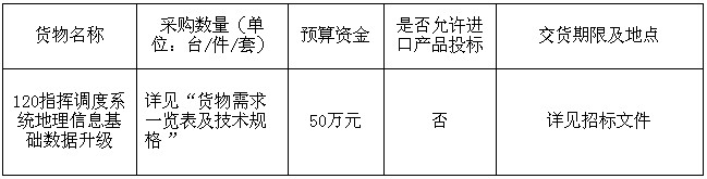 項目名稱:120指揮調(diào)度系統(tǒng)地理信息基礎(chǔ)數(shù)據(jù)升級采購項目
