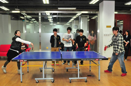 (十八) 5點(diǎn)鐘了啦,可以下班了喔,還是A班的我們幸福,晚班可就熬人啦,但不少時候?yàn)榱斯ぷ骱臀覀兊能囍骺蛻,總會偷偷的說,“為人為己服務(wù)至上,有付出就會有回報(bào)……”下班時間約了同事在公司B2打乒乓球哦~勞逸結(jié)合,放松下,現(xiàn)場觀眾很多的,男同胞很捧場,哈哈。