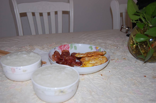 (三) 美美的打扮好后應(yīng)時吃頓早餐,這已經(jīng)很不容易了,因?yàn)榕紶栆驗(yàn)樵缟险l來熬粥和刷碗而吵嘴,呵呵,吵完就和好!有精神了,斗志昂揚(yáng),出發(fā)!