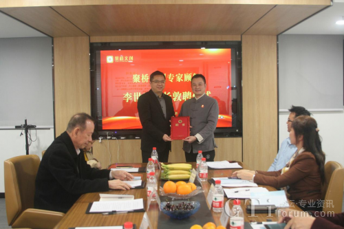 (圖:聚橋文創(chuàng)總經(jīng)理鄒橋華向廣東省傳統(tǒng)文化促進會會長李世玉頒發(fā)顧問聘書)