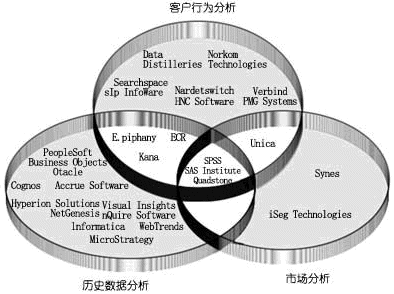 這一市場(chǎng)的供應(yīng)商目前主要分為兩大陣營(yíng):一類(lèi)著眼于客戶(hù)行為傾向分析;另一類(lèi)著眼于對(duì)客戶(hù)價(jià)值進(jìn)行評(píng)估。前者主要注重了解客戶(hù)的喜好,而后者則著重關(guān)注客戶(hù)對(duì)企業(yè)的潛在收益。