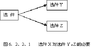 必要關(guān)系發(fā)生在選件與選件之間,即選擇一個(gè)就必須選擇另一個(gè)或多個(gè)。比如,客戶(hù)首先選擇了某種CPU后,就必須選擇某種特定的電腦主板以及內(nèi)存。其關(guān)系示圖如6、2、2、1所示。