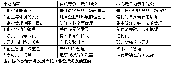 (2)核心競爭力觀念對當(dāng)代企業(yè)管理理念的影響