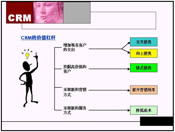 CRM就是借助信息化的手段,使你原來(lái)的"開(kāi)源節(jié)流"的設(shè)想能夠變成可以操作的流程。