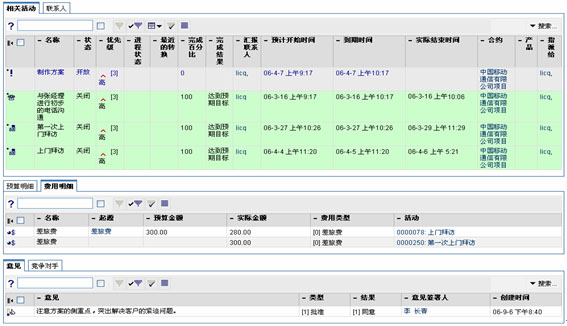 對于企業(yè)中每個業(yè)務人員每天要完成的活動可以用圖表進行量化表示,即以周為單位,監(jiān)控團隊中每個人工作情況的活動儀表盤。同時,也可以生成Excel格式的報表,分別為本周已完成和下周計劃完成的活動報表。