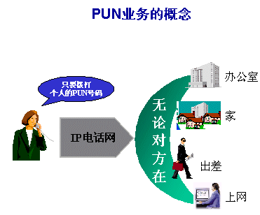 個(gè)人統(tǒng)一號(hào)碼業(yè)務(wù)是一種購筑在IP網(wǎng)上的全新通信網(wǎng)絡(luò)業(yè)務(wù),該業(yè)務(wù)給人個(gè)分配一個(gè)終身號(hào)碼,利用此號(hào)碼,用戶可以利用現(xiàn)有通信網(wǎng)絡(luò)的各種終端進(jìn)行通信,這種業(yè)務(wù)可以給用戶帶來多方便的利益,首先主叫用戶只需記住被叫方唯一的號(hào)碼即PUN,就可實(shí)現(xiàn)3W通信(任何地方、任何點(diǎn)間、任何人)之間的通信,對(duì)被叫方,可以利用現(xiàn)有的任何通信手段,如固定電話,移動(dòng)終端,PC機(jī)、分組終端、語音郵箱等進(jìn)行通信,并可以按方便和節(jié)省資費(fèi)等原則,靈活設(shè)置對(duì)不同終端的利用,如用戶上網(wǎng)時(shí),即可以利用PC進(jìn)行通話,解決了上網(wǎng)打電話的問題,或者在有多種通信手段可以選擇的時(shí)候,可以方便地選擇利用資費(fèi)較低的通信手段,此外,由于該網(wǎng)絡(luò)是架構(gòu)在IP之上,因此,在長途業(yè)務(wù)不僅可以方便地通信,而且可以享受到IP電話的低資費(fèi)。