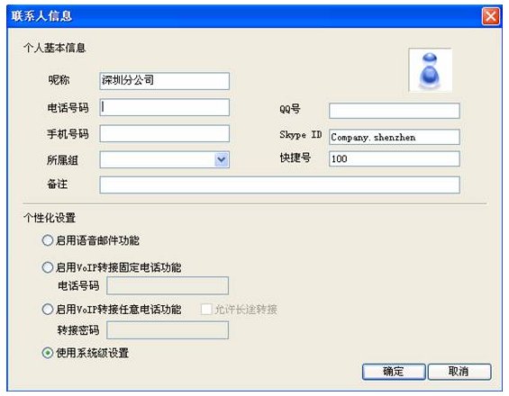 添加深圳側(cè)的 Skype為聯(lián)系人,并為其設(shè)置快捷號(hào),假設(shè)為100