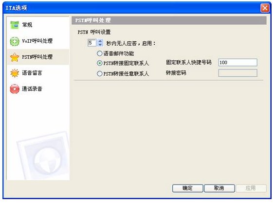 啟用 PSTN呼叫固定轉(zhuǎn)接功能,固定聯(lián)系人快捷號(hào)設(shè)置為上述聯(lián)系人的快捷號(hào),即100,如下圖所示: