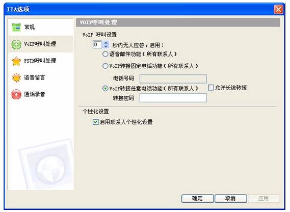 如果你使用的電話交換機(jī)比較簡(jiǎn)單,沒有內(nèi)置有語(yǔ)音引導(dǎo)號(hào)碼,你可以使用 ITA的轉(zhuǎn)接任意電話功能來(lái)實(shí)現(xiàn),設(shè)置0秒啟動(dòng),將轉(zhuǎn)接密碼置為空,配置如下: