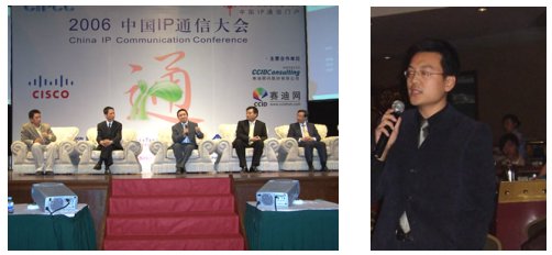 11月7日至8日,由國(guó)內(nèi)IP通信的門戶網(wǎng)站全球VoIP聯(lián)盟攜手權(quán)威研究機(jī)構(gòu)賽迪顧問舉辦的年度IP通信行業(yè)規(guī)模最大和規(guī)格最高的會(huì)議——“2006中國(guó)IP通信大會(huì)”在京開幕,來自政府主管、行業(yè)專家、在京各銀行總行,多家部委等大型行業(yè)客戶相關(guān)主管、業(yè)內(nèi)廠商代表等千余人齊聚一堂,共同探討中國(guó)IP通信行業(yè)的發(fā)展道路及未來機(jī)遇。