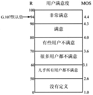 在E-Model測量中包含了影響窄帶電話通話質(zhì)量的多種傳輸參數(shù),在ITU-T G.107中提供了一組默認值,當終端和應(yīng)用環(huán)境是正常的,可以直接使用這些默認值。根據(jù)這些默認值和一些可求的參數(shù)比如延時、丟包率等可以得到E-Model輸出的傳輸參數(shù)R。R直越大,說明語音質(zhì)量越好,R值的范圍是0-100,0是最差的,100是最好的。