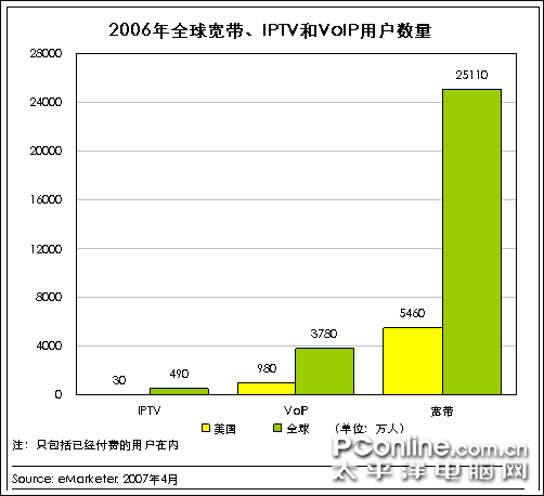 根據(jù)In-Stat最近發(fā)布的報告,VoIP技術極大推動了有線電視電話服務和用戶數(shù)增長。報告顯示,由于比傳統(tǒng)的電路交換電話成本更低,北美地區(qū)VoIP服務迅猛增長,2006年美國用戶數(shù)增加了幾乎兩倍。另外,全球各地市場也在同步增長,有線電視運營商開始考慮將電話服務捆綁銷售,推出該服務的地區(qū)包括北美洲、歐洲和一些亞洲國家。在一些國家,基于VoIP有線電視電話用戶數(shù)已經(jīng)超過電路交換有線電視電話用戶數(shù)。據(jù)國外媒體報道,目前已經(jīng)有23%的中小型企業(yè)已經(jīng)采用了VoIP技術,而這個數(shù)字在未來三年內可能上升至50%。VoIP取代傳統(tǒng)電話服務的速度要比多數(shù)人預料的快得多。