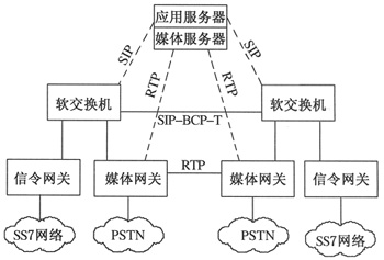 Softswitch主要實現(xiàn)連接、路由和呼叫控制、關(guān)守和帶寬的管理以及話務(wù)紀(jì)錄的生成,是網(wǎng)絡(luò)的核心。它通過各種協(xié)議與各種網(wǎng)絡(luò)實體通信,實現(xiàn)各種語音、數(shù)據(jù)、多媒體業(yè)務(wù)。通過媒體網(wǎng)關(guān)控制協(xié)議(MGCP)與媒體網(wǎng)關(guān)和信令網(wǎng)關(guān)通信,控制網(wǎng)關(guān)進(jìn)行呼叫處理,同時通過流控制傳輸協(xié)議(SCTP)與信令網(wǎng)關(guān)通信。
