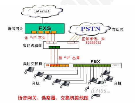 使用網(wǎng)關(guān)電話打國(guó)內(nèi)/國(guó)際其他普通公話或手機(jī),稱為“點(diǎn)對(duì)面模式”。在使用智能路由選線器以后,打出電話時(shí)自動(dòng)根據(jù)首位字頭,例如“0”,判斷選擇市話或者VOIP專線通話,--字頭有“0”,時(shí)自動(dòng)走VOIP網(wǎng)絡(luò)線路,字頭沒(méi)有“0”時(shí),選擇走通常的市話線路,完全不改變我們過(guò)去使用電話的習(xí)慣!