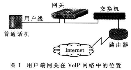 近年來隨著寬帶網(wǎng)絡(luò)和IP技術(shù)的日益發(fā)展,VoIP>(Volee over Internet Protoc01)技術(shù)的應(yīng)用越來越廣泛。網(wǎng)關(guān)是VoIP網(wǎng)絡(luò)中的重要設(shè)備,按照應(yīng)用領(lǐng)域可分為電信級網(wǎng)關(guān)和用戶端網(wǎng)關(guān)。用戶端網(wǎng)關(guān)設(shè)備主要應(yīng)用于小區(qū)和企業(yè),是連接終端電話和IP網(wǎng)絡(luò)的橋梁,主要功能是進(jìn)行語音編解碼、信令處理、VoIP協(xié)議處理和路由協(xié)議處理等。用戶端網(wǎng)關(guān)設(shè)備在VoIP網(wǎng)絡(luò)中的位置如圖1所示?梢钥闯,網(wǎng)關(guān)處于用戶電話線路部分的末端、IP網(wǎng)絡(luò)部分的起始端。