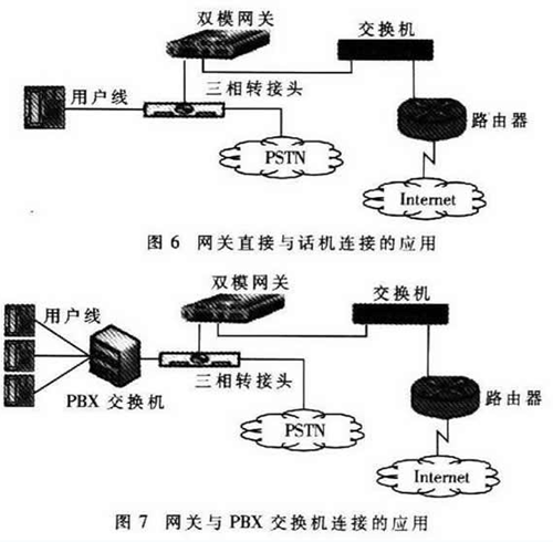 “雙模”是指VoIP和PSTN兩種模式。雙模網(wǎng)關(guān)是一種同時(shí)連接PSTN網(wǎng)絡(luò)和VoIP網(wǎng)絡(luò)并能在兩者之間自動(dòng)切換的用戶端網(wǎng)關(guān)設(shè)備。雙模網(wǎng)關(guān)可以使用