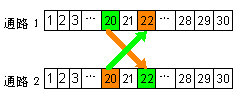 直接把要交換的Channel的對應(yīng)時隙的數(shù)據(jù)拷貝到通路(或另一通路)中要交換的時隙位置即可。下圖3顯示了兩個E1支路上不同通道(Channel)間的交換情況。