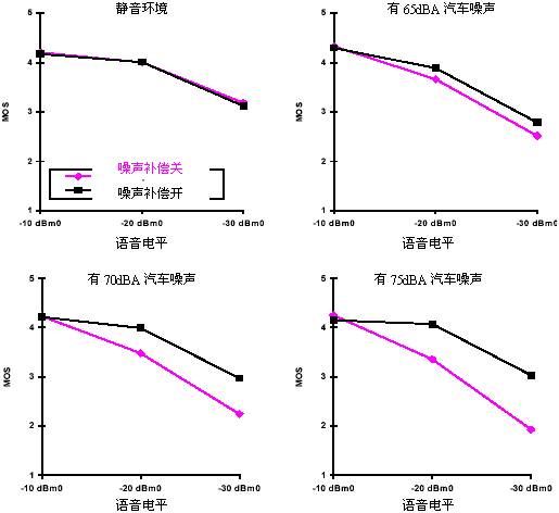 圖3 在噪聲補償功能上的MOS測試顯示出用戶感覺到話音質(zhì)量變化的明顯增加;