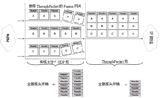 Clarent ThroughPacket是Clarent公司擁有專利權(quán)的IP多路復(fù)用算法,提供了一個讓數(shù)據(jù)和包的速率失效的解決方案。Clarent ThroughPacket通過把來自多個Fusion語音通道的語音載荷組合進一個大包來實現(xiàn)這一功能。需要說明的是:Clarent ThroughPacket是Clarent公司和NMS公司合作開發(fā)的,NMS公司完全有權(quán)把這一技術(shù)應(yīng)用于Fusion平臺以及其它的NMS產(chǎn)品之中。