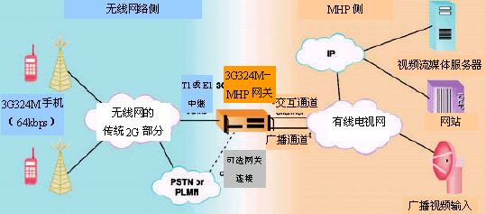 如果MHP機(jī)頂盒的顯示介面做得和視頻手機(jī)終端相類似,那么,MHP Java應(yīng)用程序無需任何修改就可以被無線視頻用戶使用。對(duì)于應(yīng)用程序開發(fā)人員來說,從普通網(wǎng)關(guān)的有線電視側(cè)看,這時(shí)的無線用戶就象是一個(gè)典型的交互式電視用戶。在無線網(wǎng)絡(luò)側(cè),網(wǎng)關(guān)是作為無線視頻呼叫的標(biāo)準(zhǔn)部件出現(xiàn)的,因此兩個(gè)網(wǎng)絡(luò)都不需要做任何改動(dòng),只要增加這個(gè)連接兩個(gè)網(wǎng)絡(luò)的網(wǎng)關(guān),然后告訴無線用戶這兩個(gè)網(wǎng)絡(luò)已經(jīng)連接起來了就行了。只需要對(duì)網(wǎng)關(guān)的處理作修改,這些功能特性也可以應(yīng)用到不是遵循3G324M標(biāo)準(zhǔn)的視頻手機(jī)而無須對(duì)MHP應(yīng)用程序側(cè)作任何變更。