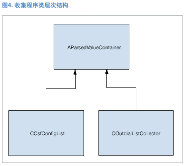AparsedValueContainer類沒有數(shù)據和方法。它僅用于配合收集程序類的運行。(見圖3。)抽象收集程序類純虛擬功能CollectValues()的第二個影響因素是容器,當在具體收集程序類實施中定義了容器時,必須使用通用的基礎類。所以在真正使用容器之前,必須在每個具體的收集程序類中進行向下類型轉換。